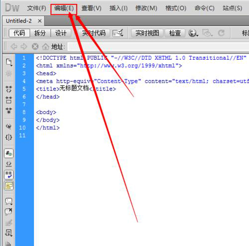首先,我們打開我們的dreamweaver軟件,在“代碼”視圖中,可以看到代碼比較小。